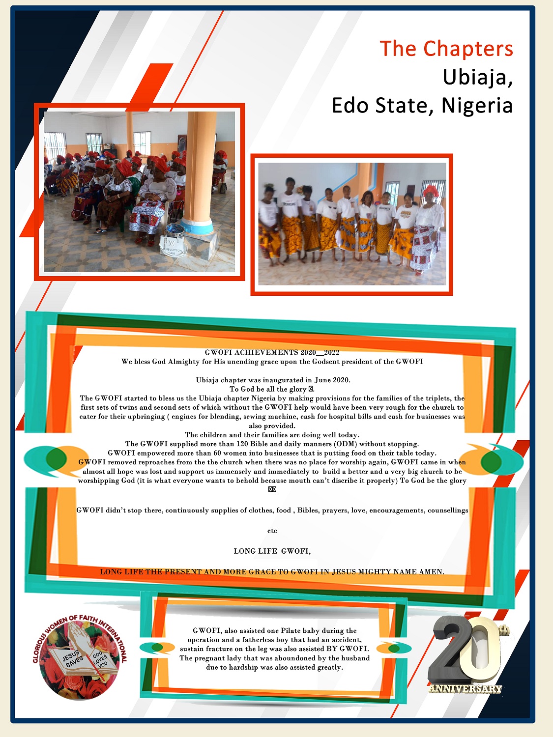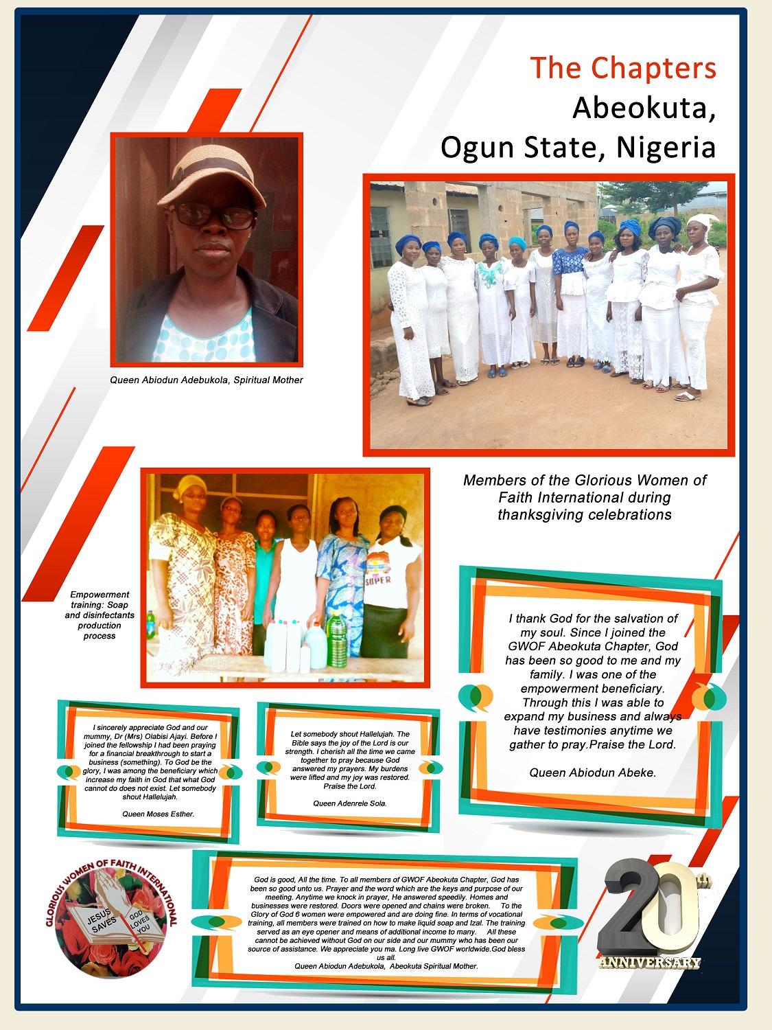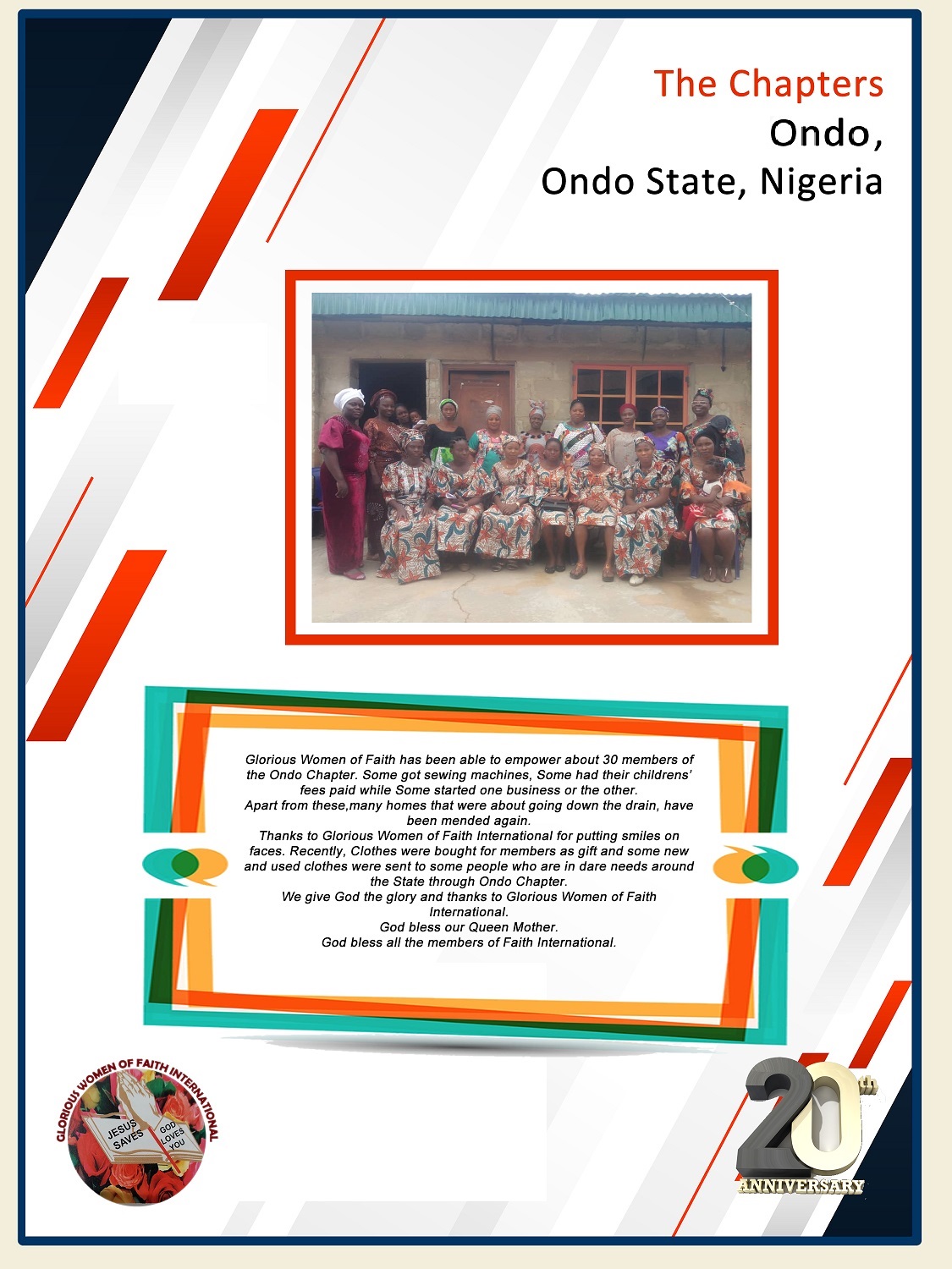 THE CHAPTERS Ilorin Chapter Ibadan Chapter Badagry Chapter Anambra Chapter Ondo Chapter Ado-Ekiti Chapter Ubiaja Chapter Ofatedo Chapter Magodo Chapter Abeokuta Chapter Kenya Chapter Lokoja Chapter